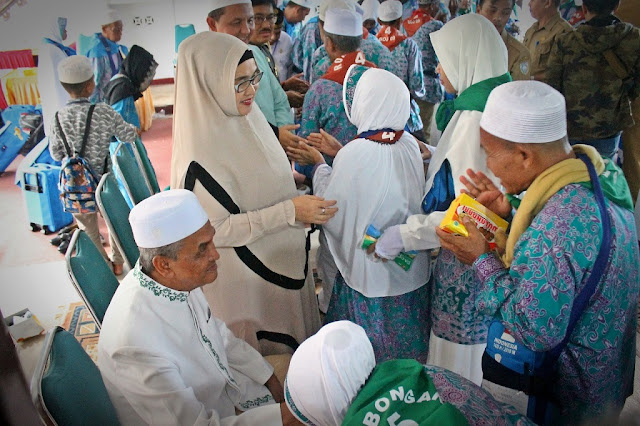 Martapura, infoPublik – Doa dan lambaian tangan mengiringi keberangkatan 325 Jamaah Calon Haji (CJH) asal Kabupaten Banjar, yang tergabung dalam kelompok terbang 9 embarkasi Banjarmasin. Para jamaah dilepas oleh Bupati Banjar H Khalilurrahman di Mahligai Sultan Adam, Martapura Kamis (31/7).
