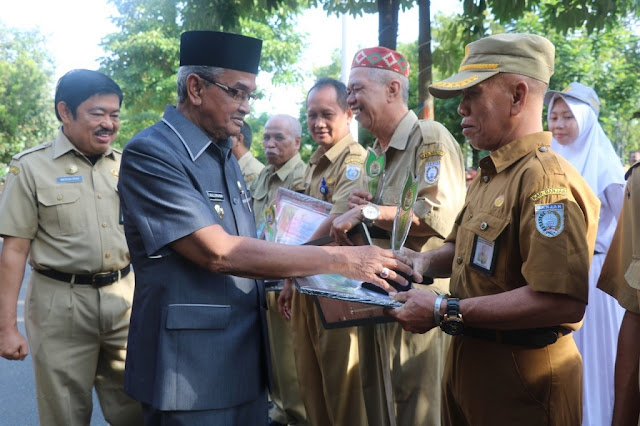 Penyerahan penghargaan dilakukan oleh Bupati Banjar H Khalilurrahman dan diterima oleh perwakilan sekolah, di sela apel gabungan lingkup Pemerintah Kabupaten Banjar, Senin (7/1).