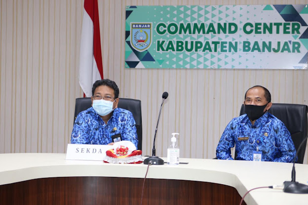 Penandatanganan PKS diteken Ketua Bawaslu, Abhan dan Ketua KASN, Agus Pramusinto yang disaksikan langsung melalui vidcon oleh Sekretaris Daerah Kabupaten Banjar, HM Hilman didampingi Sekretaris BKDPSDM Banjar, Ajidinnor Ridhali, Kabid Mutasi Promosi dan Informasi, Joko Sutrisno di Command Center Barokah.