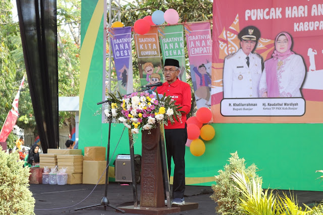 Bupati Banjar, H Khalilurrahman mengatakan, bersyukur bisa menghadiri suasana yang penuh kebahagiaan, untuk memperingati Hari Anak Nasional Tahun 2019. Momen ini diperingati, didasarkan oleh kesadaran betapa pentingnya kedudukan anak sebagai calon penerus generasi bangsa. Karena itu, perhatian terhadap anak merupakan kewajiban semua pihak, mulai dari orang tua, masyarakat, pemerintah, sekolah, sampai organisasi kemasyarakatan.