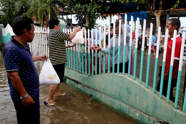 Pembagian sembako tersebut, adalah untuk meringankan beban warga yang mengalami kesulitan dalam beraktivitas karena musibah banjir,