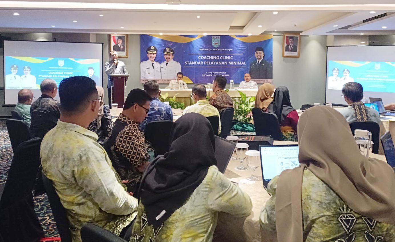 JAKARTA – Bappedalitbang Kabupaten Banjar memainkan peran strategis dalam penguatan perencanaan layanan dasar melalui keikutsertaannya pada kegiatan Coaching Clinic Penerapan Standar Pelayanan Minimal (SPM) yang digelar Bagian Pemerintahan Setda Pemkab Banjar selama dua hari, Rabu hingga Kamis (4–5/2/2026), di Hotel Orchardz Jayakarta, Jakarta. Kegiatan ini menjadi momentum penting dalam memastikan kebijakan layanan publik tersusun berbasis data dan selaras dengan arah pembangunan daerah.
