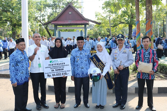 Bupati Banjar KH Khalillurahman didampingi Kepala Dinas Perhubungan H.M.A Basith, juga menyarahkan santunan kecelakaan kerja dari BPJS Ketenaga Kerjaan kepada Syarbaini sebesar Rp84 juta serta penyerahan uang bantuan untuk korban gempa dan tsunami di Palu Sulawesi Tengah.