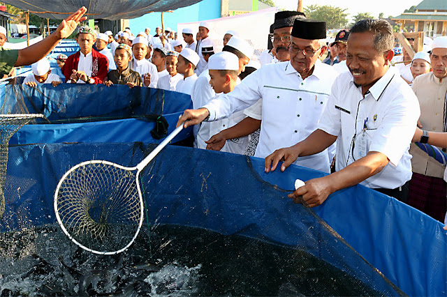 Bupati Banjar Bersama Santri Panen Perdana Ikan Lele