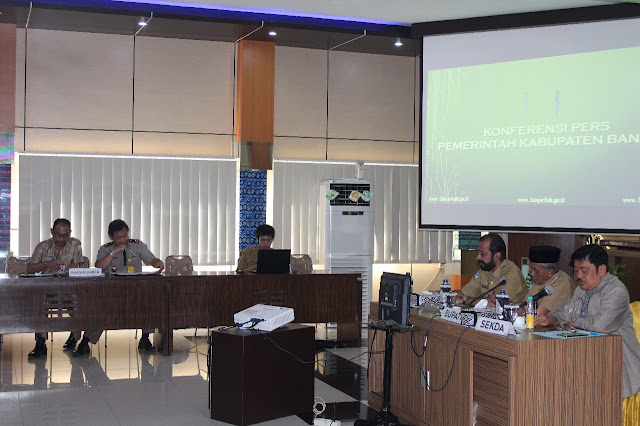 Martapura, infoPublik – Bupati Banjar H Khalilurrahman beserta sejumlah satuan kerja perangkat daerah (SKPD) menggelar konferensi pers di Aula Barakat, kantor Pemkab Banjar, Selasa (24/7).