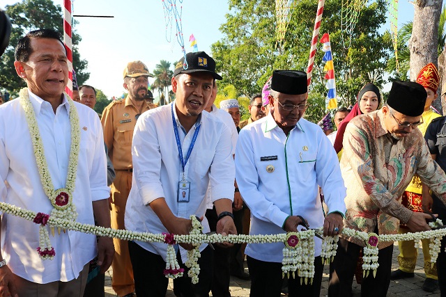 Martapura, InfoPublik – Bupati Banjar H Khalillurrahman tersenyum gembira saat meresmikan Intake Karang Intan, di Desa Mandikapau Kecamatan Karang Intan, Selasa (25/9).