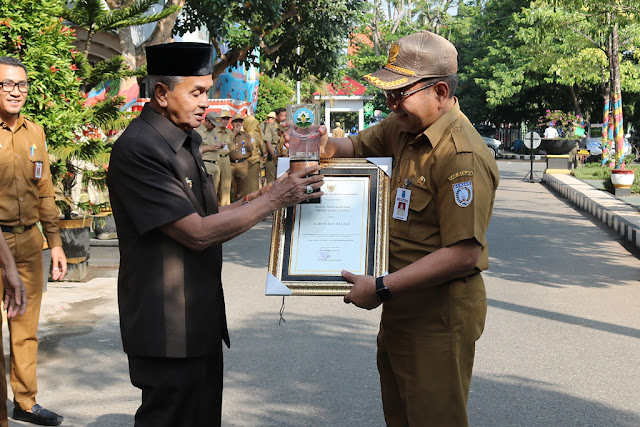 Bupati Banjar Serahkan Penghargaan Swasti Saba Padapa Pada Apel Kerja Gabungan Kabupaten Banjar