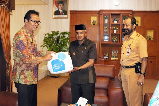 Martapura, InfoPublik – Bupati Banjar, H Khalilurrahman menerima kunjungan silaturahmi Kepala Stasiun Lembaga Penyiaran Publik TVRI Kalimantan Selatan, Triyono, didampingi Kepala Dinas Kominfo, Statistik dan Persandian Kabupaten Banjar, HM Farid Soufian, di Rumah Dinas Bupati Banjar Martapura, Selasa (23/7/2019) pagi.