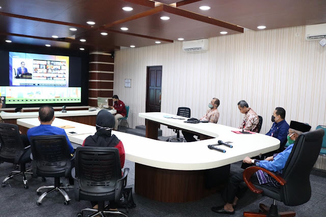 Martapura, InfoPublik – Bupati Banjar H Khalilurrahman bersama Kepala Dinas terkait menyaksikan pembukaan Musyawarah Rencana Pembangunan Nasional (Musrenbangnas) 2020 melalui siarang langsung TVRI di Command Center Barokah, Pendopo Bupati Banjar, Kamis (30/4/2020).