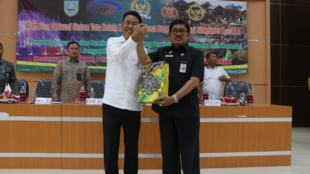 Martapura,InfoPublik — Dinas Pemberdayaan Masyarakat Desa Kabupaten Banjar gelar Workshop Evaluasi Sistem Tata Kelola Keuangan Desa dengan Aplikasi Siskeudes versi 2.0 dengan tema “Pengelola Keuangan dan Pembangunan Desa yang Partisipatif, Transparan dan Akuntabel Dengan Menggunakan Aplikasi Siskudes†bersama BPKP, DPR RI, Polri, BPK RI, dan Pemerintah Kabupaten Banjar, di Aula Dinas Pendidikan Kabupaten Banjar, Selasa (5/3/2019) pagi. Dihadiri seluruh Camat dan Pambakal se-Kabupaten Banjar, dan Para Satuan Petugas Sistem Keuangan Desa Kabupaten dan Kecamatan.