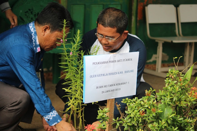 Seperti yang dilakukan di Sekolah Dasar Negeri (SDN) Keramat 1, Kecamatan Sungai Tabuk Kabupaten Banjar. Dinas Kesehatan menyerahkan alat kebersihan serta ikan guppy untuk dilepas di kolam taman sekolah.