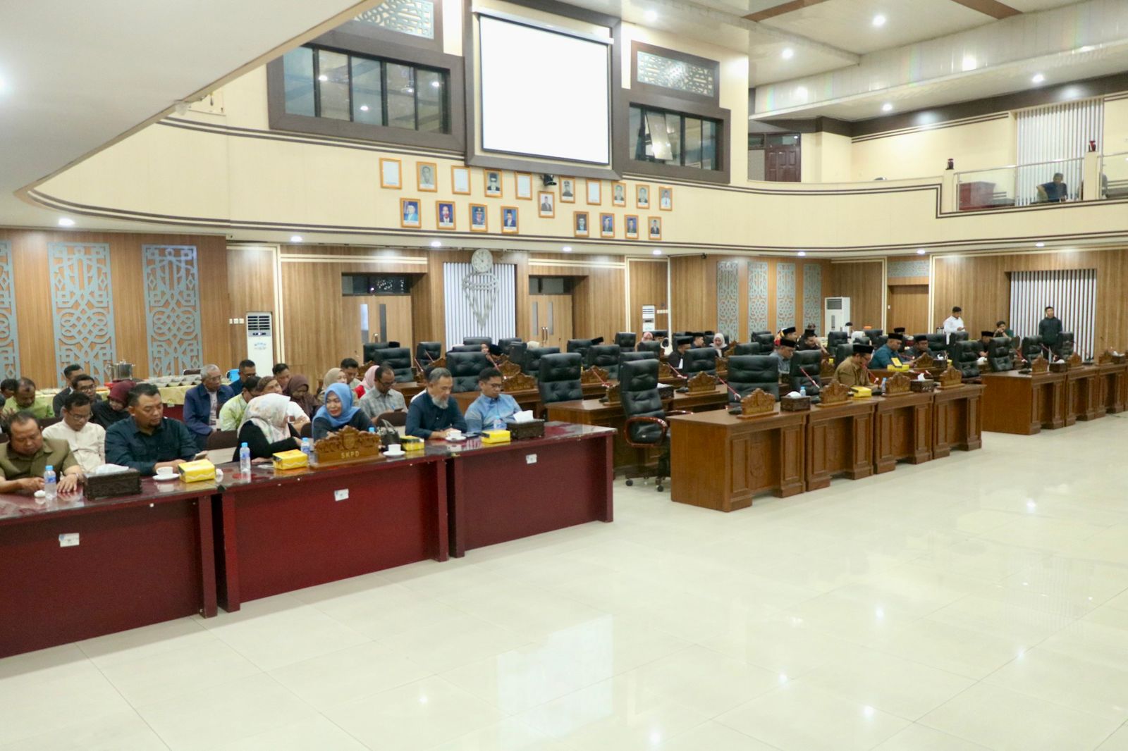 Rapat ini dipimpin Wakil Ketua I DPRD Banjar H Irwan Bora, didampingi unsur pimpinan lainnya dan dihadiri Forkopimda serta pejabat daerah, termasuk Pj Sekda Banjar H Ikhwansyah.