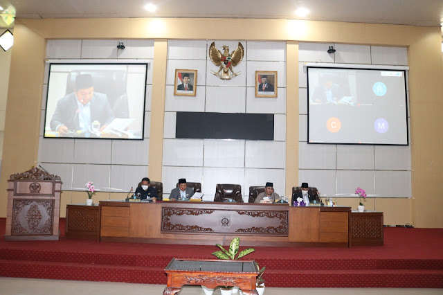 Hal tersebut terungkap saat Rapat Paripurna di Gedung DPRD Banjar, Martapura, Rabu (25/11/2020). Rapat dipimpin oleh Ketua DPRD Banjar M Rofiqi ini diikuti Sekretaris Daerah Kabupaten Banjar, HM Hilman serta Bupati Banjar H Khalillurrahman mengikuti secara virtual