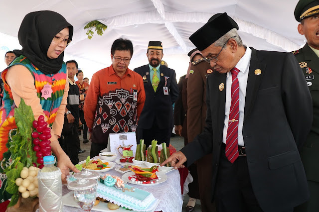 Dilanjutkan dengan langsung mengujungi stand lomba masak oleh Bupati Banjar, H Khalilurrahman didampingi Ketua TP PKK Banjar, Hj Raudathul Wardiyah bersama jajaran Forkopimda Banjar, Kepala OPD Banjar bersama-sama mencicipi makanan olahan seluruh PKK dan OPD Banjar menghadirkan juri, Master Chef Indonesia 2019, Yulita Intan Sari atau dikenal Mama Lita. (MC-Kominfo-Kab.Banjar/Rzq/Prs/Man/Dsy)