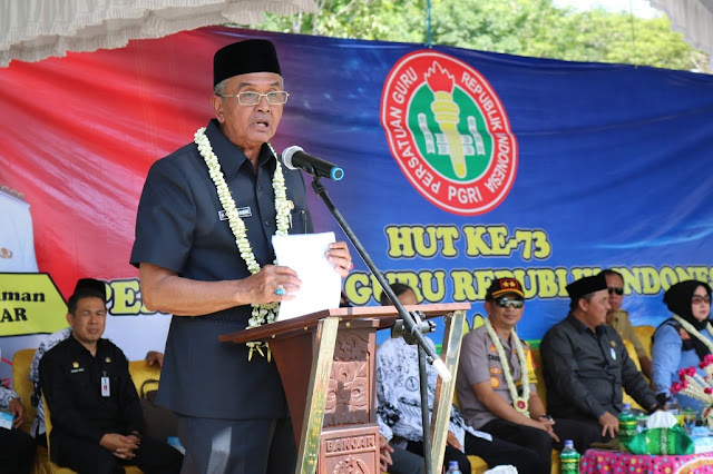 Bupati mengajak untuk menjadikan momentum ini untuk mewujudkan guru sebagai penggerak perubahan menuju Indonesia Cerdas berkarakter dalam revolusi industri Four Point Zero, terutama untuk para guru di Kabupaten Banjar sebagaimana tema peringatan HUT ke-73 PGRI dan hari guru nasional pada kesempatan ini.