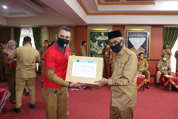“Bantuan yang diserahkan ini berupa Baju Hazmat sebanyak 5 psc, Face Shield sebanyak 95 pcs dan Masker sebanyak 5 box,†terangnya.