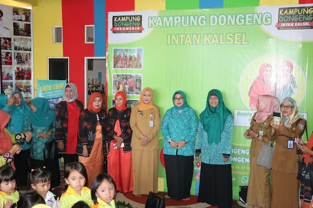 Kedatangan Ketua TP PKK Kabupaten Banjar bersama tim verifikasi Provinsi Kalsel itu disambut anak-anak dan Ketua Kampung Dongeng Intan Kalsel, Bunda Enik Mintarsih. Para anak-anak yang berasal dari PAUD, TK dan SMPN 3 Martapura menggelar senam tangan, bernyanyi dan mendengar dongeng dari Bunda Enik Mintarsih serta ada penampilan sulap.