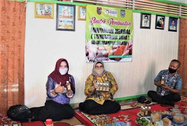 Hal tersebut membuat Ketua Dekranasda kabupaten Banjar, Hj Raudathul Wardiyah didampingi Kepala Dinas Perindustrian dan Perdagangan (Disperindag) Banjar, I Gusti Made Suryawati melakukan kunjungan ke tempat pembuatan minuman herbal temulawak jahe pada IKM di Jalan Inayatullah, Desa Dalam Pagar, Kecamatan Martapura Timur, Kamis (4/6/2020).
