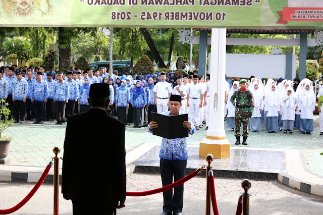 Bupati Banjar Khalilurrahman menyampaikan amanat Menteri Sosial RI Agus Gumiwang Kartasasmita, mengenang para pahlawan dalam peristiwa pertempuran di Surabaya pada 73 tahun silam.