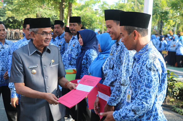 Martapura, InfoPublik – Apel gabungan di lingkup Pemerintahan Kabupaten Banjar, kali ini juga sekaligus memperingati Hari Kesadaran Nasional yang diikuti oleh seluruh Aparatur Sipil Negara (ASN) Satuan Kerja Perangkat Daerah (SKPD) Kabupaten Banjar di Halaman Kantor Bupati Kabupaten Banjar, Senin (18/3/2019).