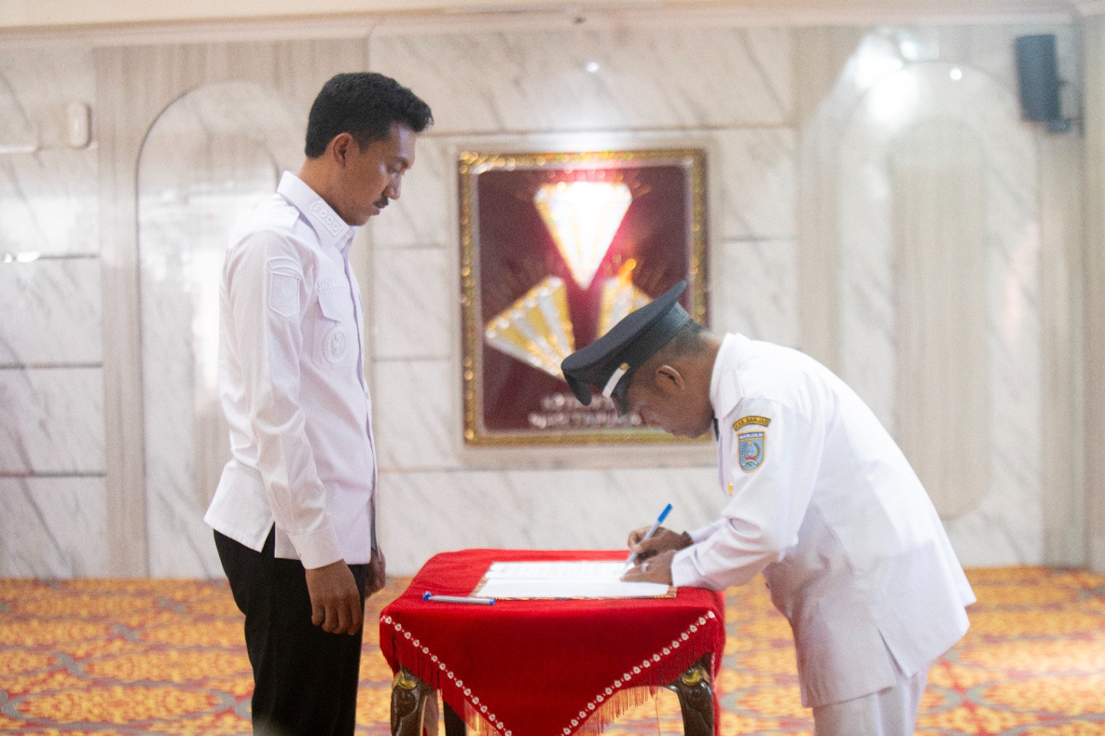 Pelantikan ditandai dengan penandatanganan berita acara serta penyerahan Surat Keputusan Bupati Banjar kepada masing-masing pambakal yang dilantik.