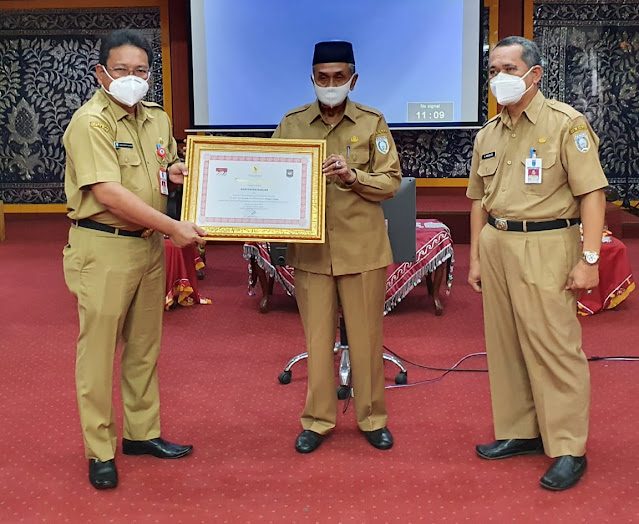 Dalam rakor ini juga dilakukan penyerahan piagam penghargaan kepada Bupati Banjar H.Khalilurrahman dari Menteri dalam Negeri atas Prestasi Laporan penyelenggaraan Pemerintah Daerah (LPPD) bedasarkan Laporan tahun 2018. (MC Kab.Banjar/Dilla/Man)
