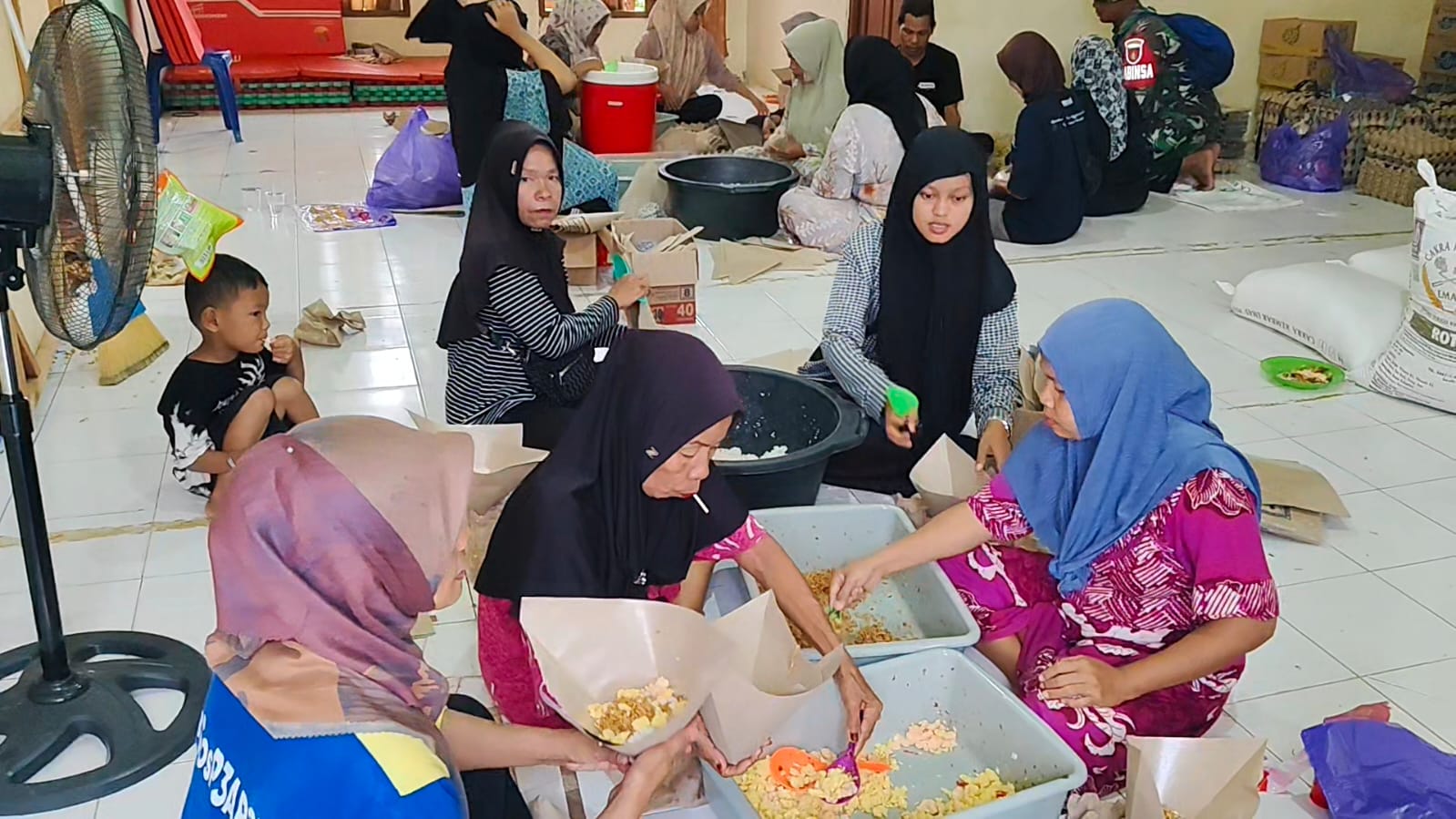 Pengelolaan dapur umum tersebut dilakukan secara gotong royong dengan dukungan berbagai pihak, di antaranya Taruna Siaga Bencana (Tagana), pihak kecamatan setempat, Pramuka serta Karang Taruna. Seluruh unsur tersebut terlibat langsung dalam penyediaan dan pendistribusian makanan bagi warga terdampak.