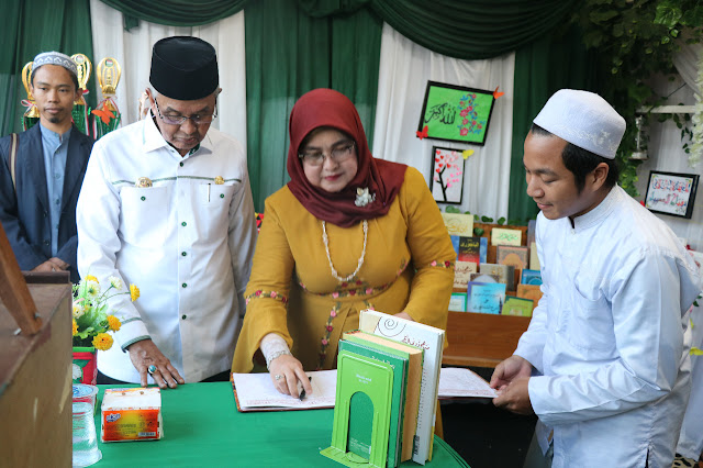 Selanjutnya Bupati Banjar bersama rombongan meninjau lokasi stand pameran Pondok Pasantren, dengan sambutan sholawat serta tabuhan rebana para santri mengiringi kunjungan orang nomor satu di Kabupaten Banjar tersebut.