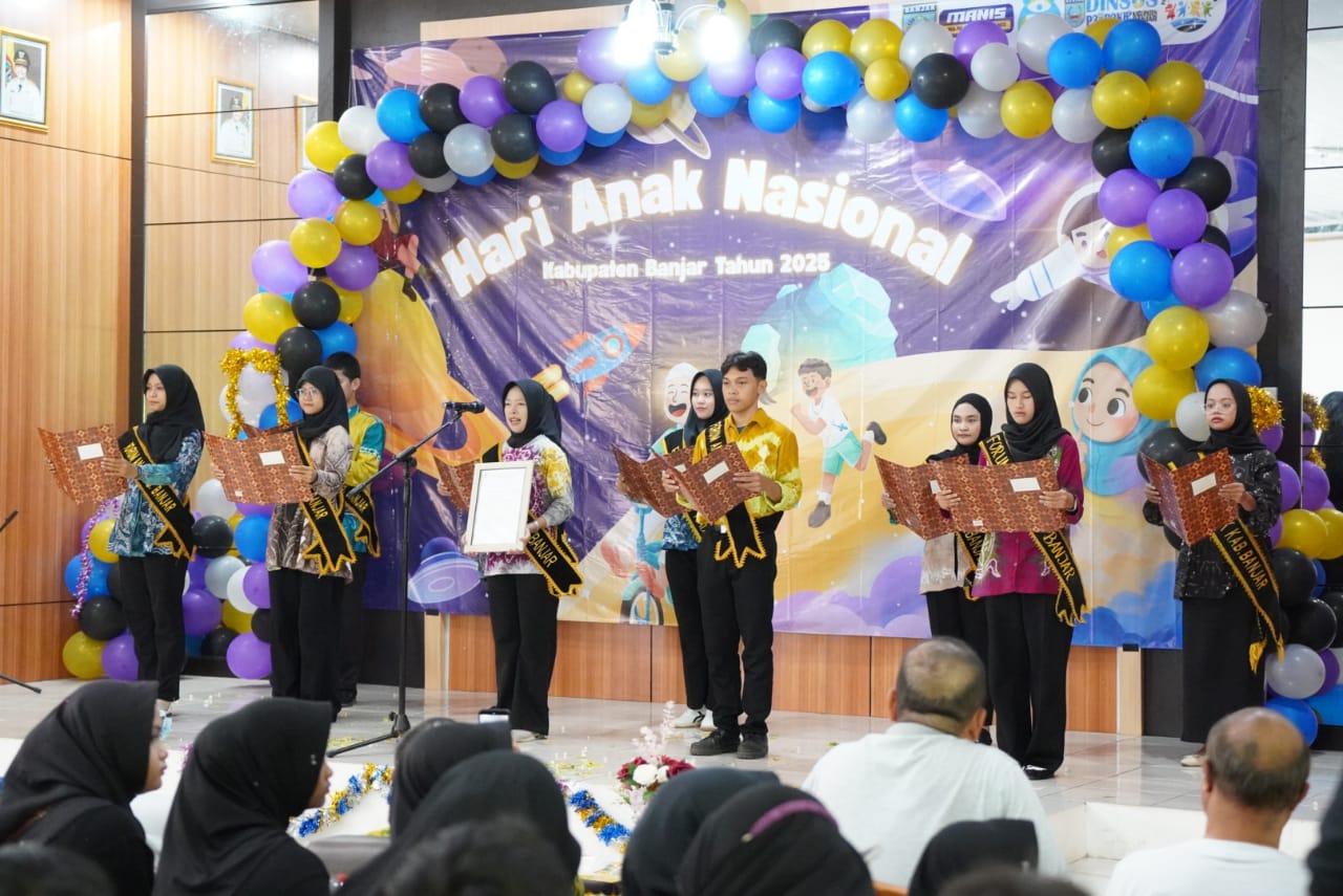 MARTAPURA – Pemerintah Kabupaten Banjar melalui Dinas Sosial Pemberdayaan Perempuan, Perlindungan Anak, Pengendalian Penduduk dan Keluarga Berencana (Dinsos P3AP2KB) menggelar peringatan Hari Anak Nasional (HAN) 2025, di Aula Kecamatan Martapura, Jumat (12/12/2025) pagi.