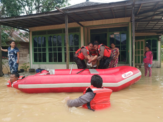 IPDA Muslim mengatakan, evakuasi tersebut dalam rangka membantu masyarakat yang rumahnya terendam banjir ke tempat yang aman dan ditampung ke rumah warga atau kerabatnya.
