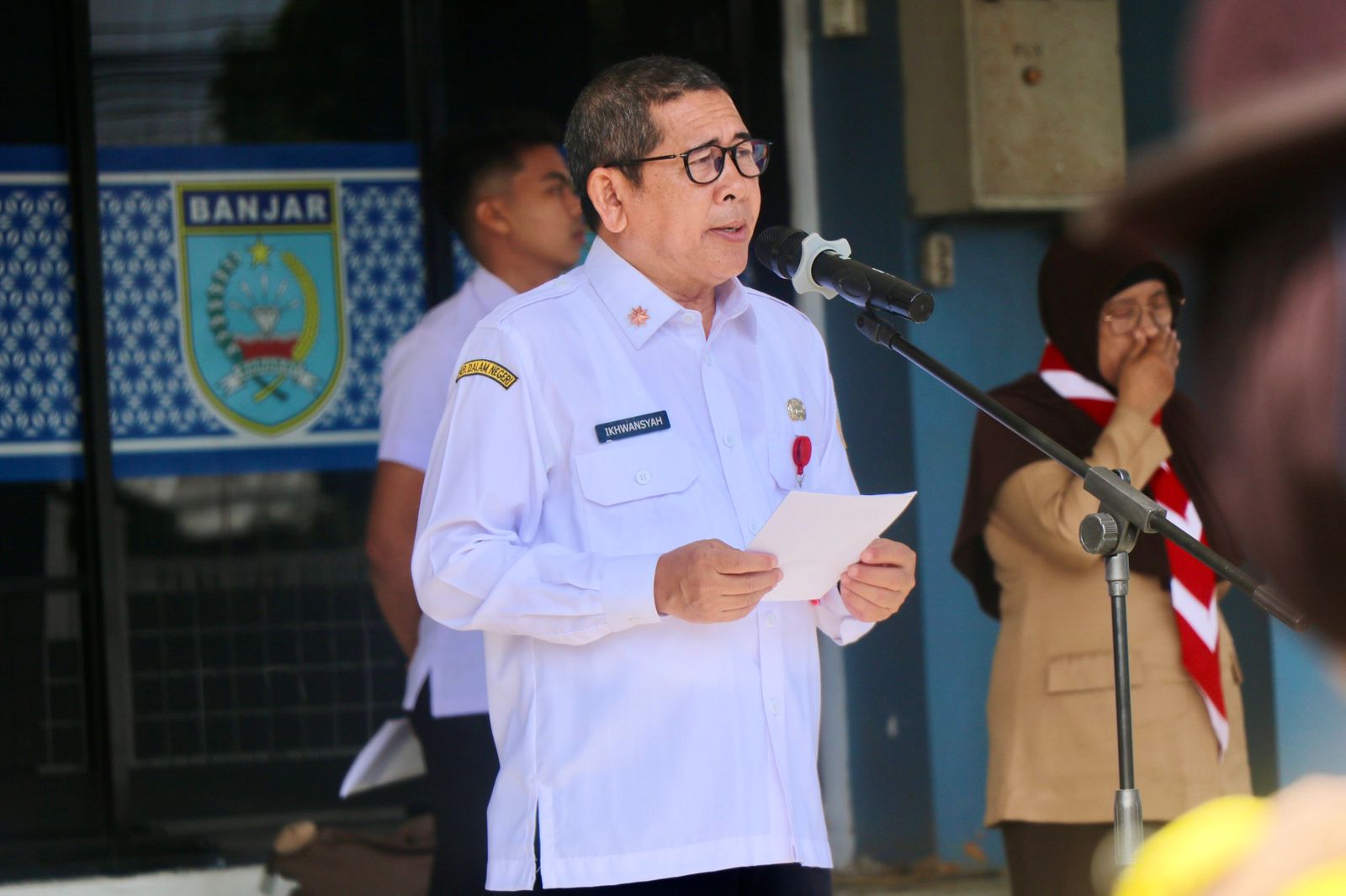 Pj Sekda Ikhwansyah membacakan pesan Bupati Banjar H Saidi Mansyur selaku Ketua Majelis Pembimbing Cabang (Mabicab) Gerakan Pramuka Banjar. Ia menegaskan bahwa kegiatan PWD bukan sekadar perkemahan biasa, melainkan bentuk nyata komitmen Gerakan Pramuka, khususnya anggota Penegak dan Pandega, dalam berkontribusi membangun masyarakat.