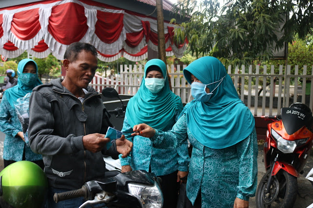 Ketua Pokja IV TP PKK Kabupaten Banjar Salinah mengatakan, hari ini dibagikan 100 masker untuk masyarakat yang tidak menggunakan masker saat berkendara, masker yang bersumber dari TP PKK Provinsi Kalimantan Selatan berjumlah 50 ribu yang akan dibagikan ke 20 Kecamatan se-Kabupaten Banjar.