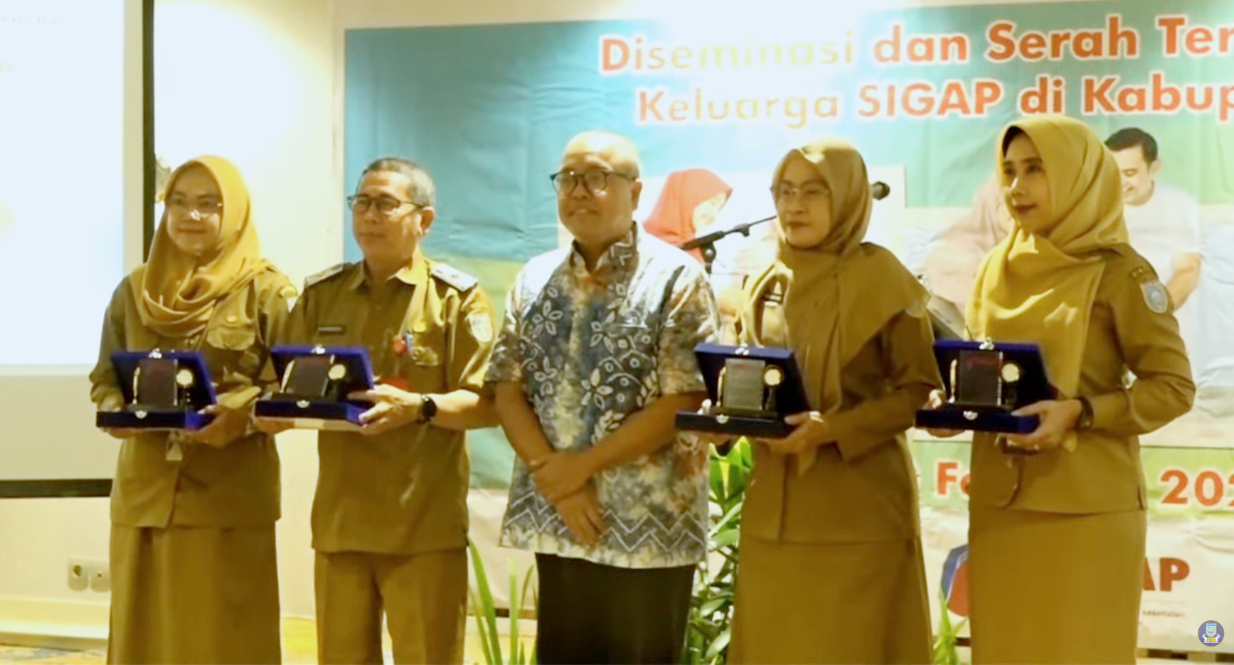 BANJARBARU – Badan Perencanaan Pembangunan Daerah, Penelitian dan Pengembangan (Bappedalitbang) Kabupaten Banjar menerima apresiasi berupa plakat atas dukungan dan keterlibatan aktif dalam keberhasilan Program Keluarga SIGAP di Kabupaten Banjar. Plakat penghargaan tersebut diserahkan langsung oleh Team Leader Program Keluarga SIGAP, Ardi Prastowo, dan diterima oleh Kepala Bappedalitbang Kabupaten Banjar yang diwakili oleh Kepala Bidang Pemerintahan dan Pembangunan Manusia (PPM), Fara Hayani. Momen serah terima ini berlangsung dalam rangkaian kegiatan Desiminasi dan Serah Terima Program Keluarga SIGAP di Kabupaten Banjar, bertempat di Grand Qin Banjarbaru, Selasa (10/2).