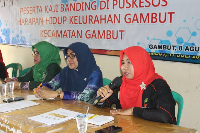 Anna dan rombongan yang disambut oleh Kepala Seksi Kesejahteraan Sosial Kecamatan Gambut ibu Hj. Nor Aidah mengharapkan, peserta studi tiru dapat mengamati, meniru dan inovasi serta memodifikasi apa yang dilakukan oleh Puskessos Harapan Hidup dengan menyesuaikan muatal lokal sesuai kondisi desa masing-masing.