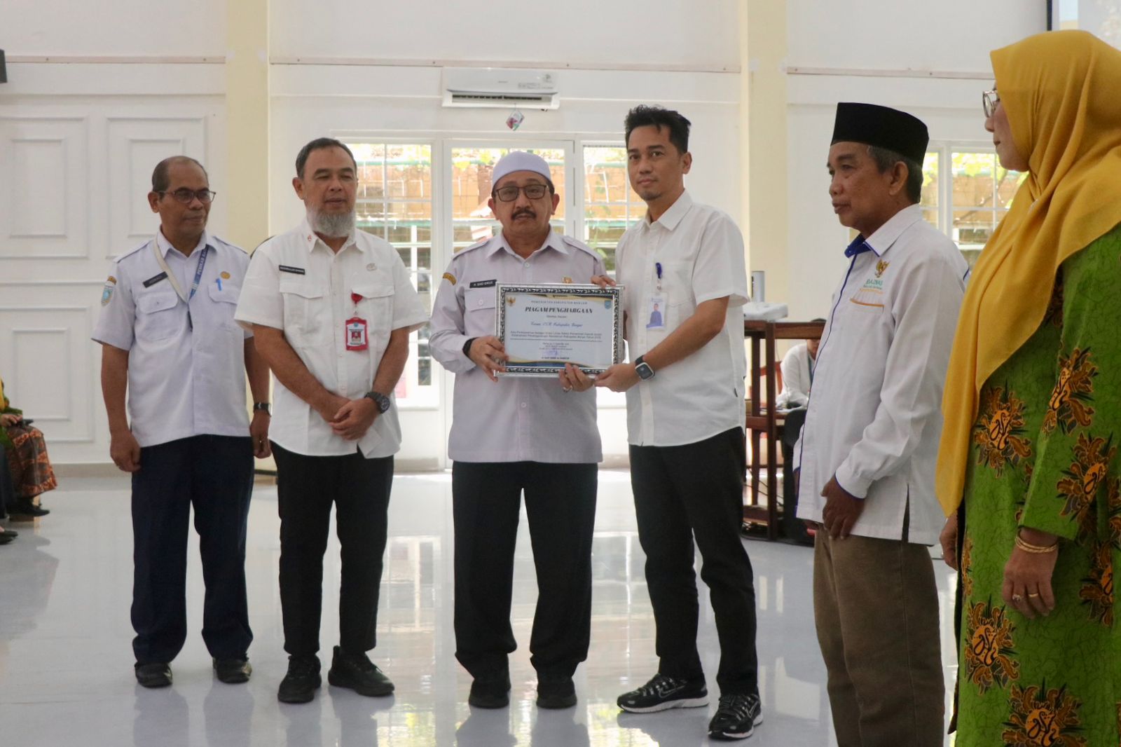 Rakor ditutup dengan penyerahan penghargaan kepada Forum CSR yang diwakili PTAM Intan Banjar, Baznas, dan Pimpinan Daerah Aisyiyah Kabupaten Banjar atas kontribusinya sebagai unsur lintas sektor dalam pelaksanaan penanggulangan kemiskinan tahun 2025.