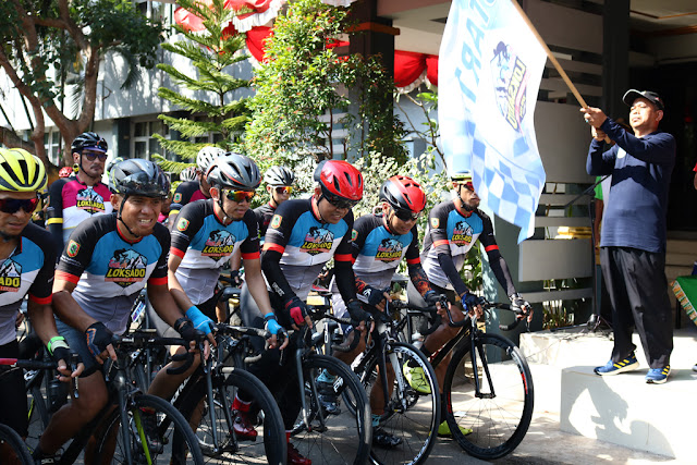 Asisten I Bidang Kemasyarakatan dan Kesra, H Masruri sebelum melepas kembali para goweser menyemangati dan memotivasi para peserta untuk bisa melahap jalur yang ditentukan. Beliau juga mendoakan keselamatan dan kelancaran perjalanan para peserta Tour De Loksado.