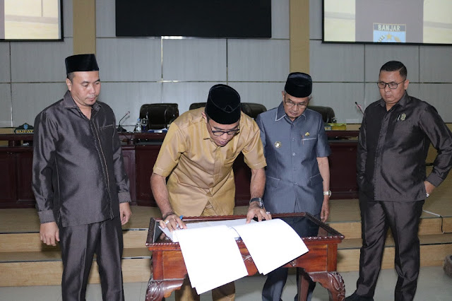 Dalam rapat paripurna ini, Ketua DPRD Banjar, H Rusli ini dan Bupati Banjar, H Khalillurrahman menandatangani Berita Acara untuk revisi Perda RTRW Kabupaten Banjar, bertempat di Ruangan Rapat Paripurna DPRD Banjar, Senin (5/8/2019) siang.