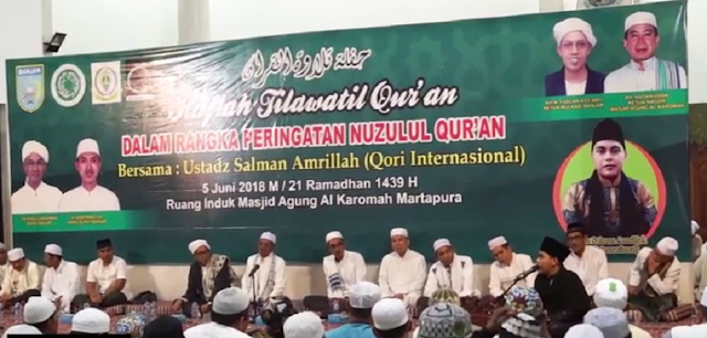 Kegiatan Peringatan Nuzulul Qur’an diselenggarakan oleh Pemerintah Kabupaten Banjar bekerjasama dengan Majelis Ulama Indonesia Kabupaten Banjar, LPTQ Kabupaten Banjar serta pengrus Masjid Al-Karomah Martapura, dengan menghadirkan qori terbaik internasional Ustadz Salman Amrillah serta sejumlah qori nasional asal Kabupaten Banjar. (MC-Kominfo-Kab.Banjar/ogb/dani)