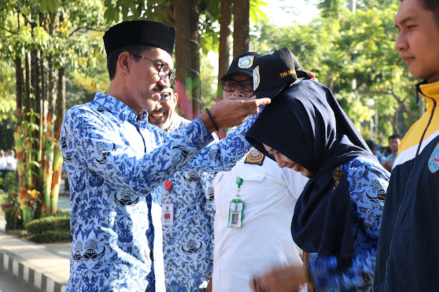 Pengukuhan ditandai dengan pemasangan topi secara simbolis kepada anggota Tim Terpadu Daltib IMB Wilayah Kabupaten Banjar, usai apel Hari Kesadaran Nasional di halaman Sekretariat Pemkab Banjar, Martapura, Kalimantan Selatan, Rabu (17/7/2019).
